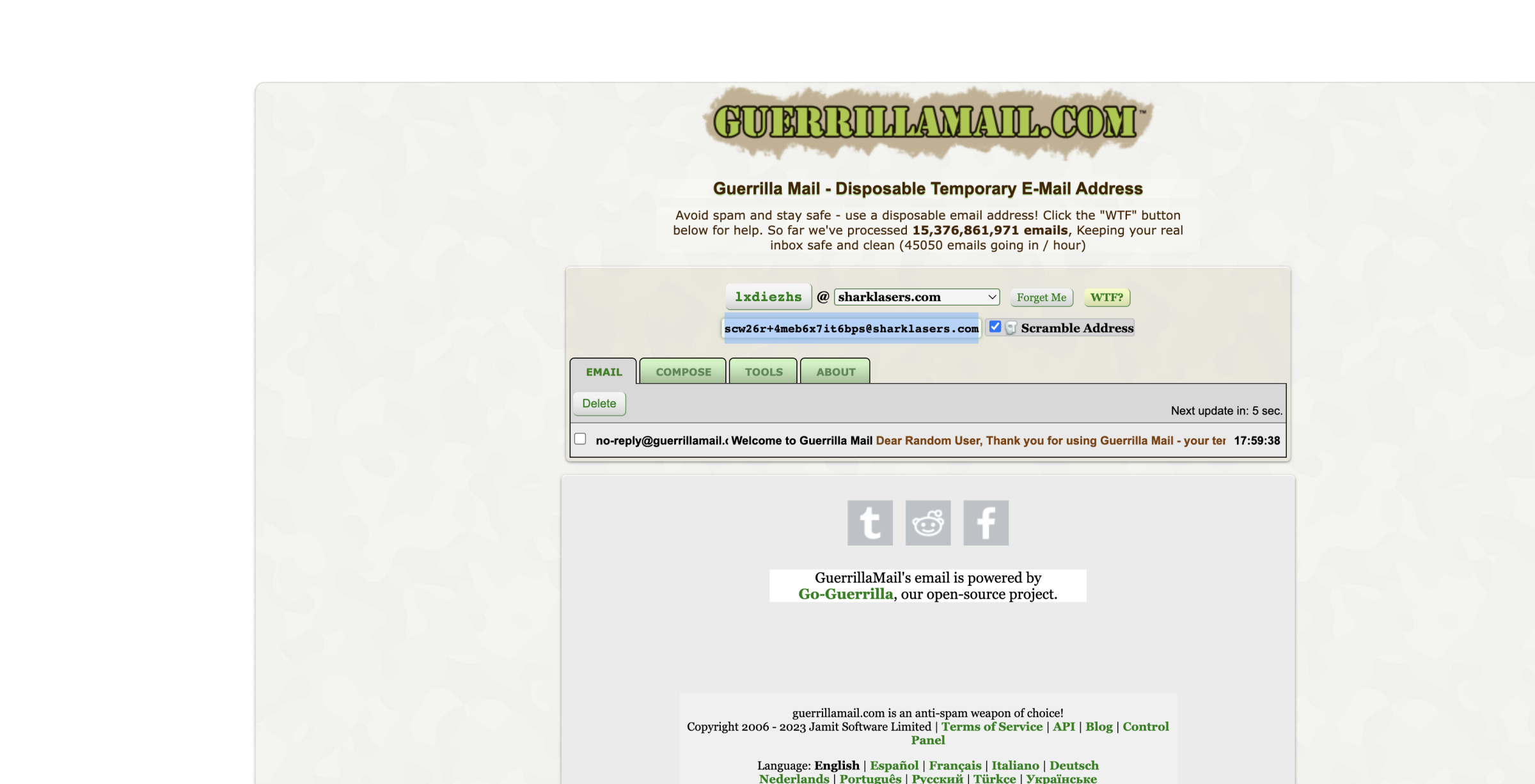 Source: Guerilla MailUsing Guerilla Mail (an open source project) is fairly straightforward—you enter the website and get a ready-made email with a random address, ID, and domain name. You can edit the ID or pick one of the preset domain names.The platform allows you to compose, receive, and reply to emails. You can also send files up to 150 MB.