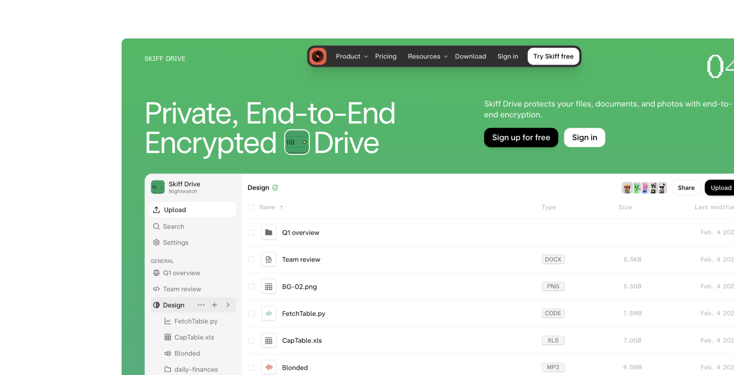 Source: SkiffSkiff Drive is a privacy-first, end-to-end encrypted cloud storage that gives users full ownership of their data. Your files are encrypted before reaching Skiff’s servers and can’t be accessed by anyone other than the users you decide to share them with.