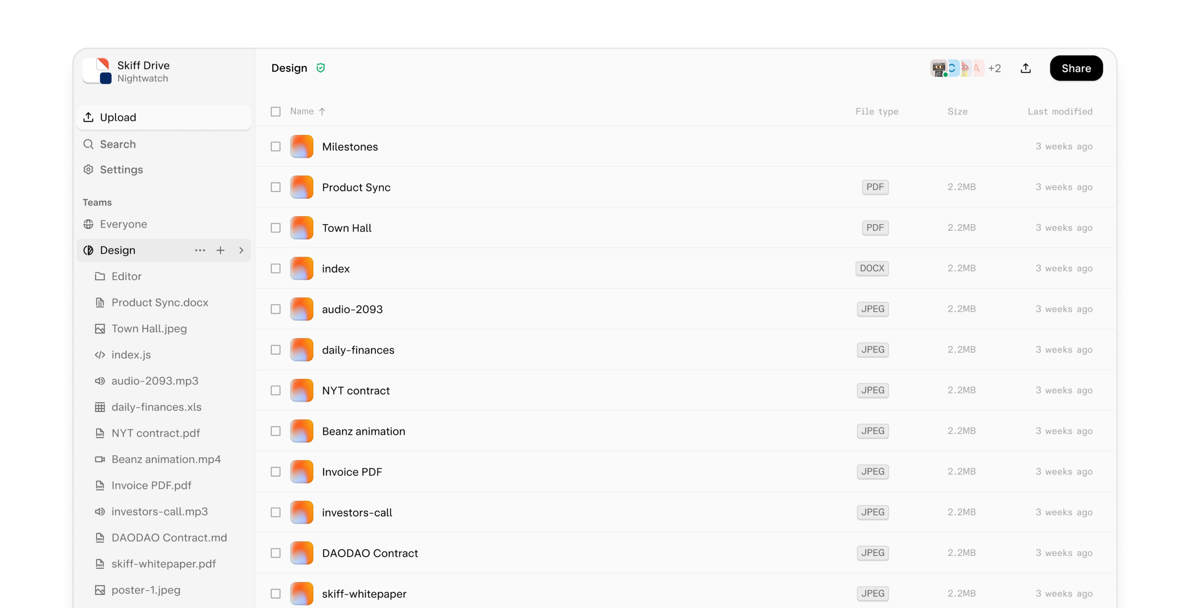 Source: SkiffSkiff Drive is an end-to-end encrypted cloud solution using advanced cryptography to ensure complete privacy of stored files. It’s suitable for personal and business use thanks to a generous free plan and various features ensuring streamlined collaboration.