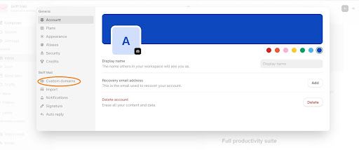 - Skiff Domains—If you want to add more domains for private email, you can purchase them directly in-app from the custom domains tab