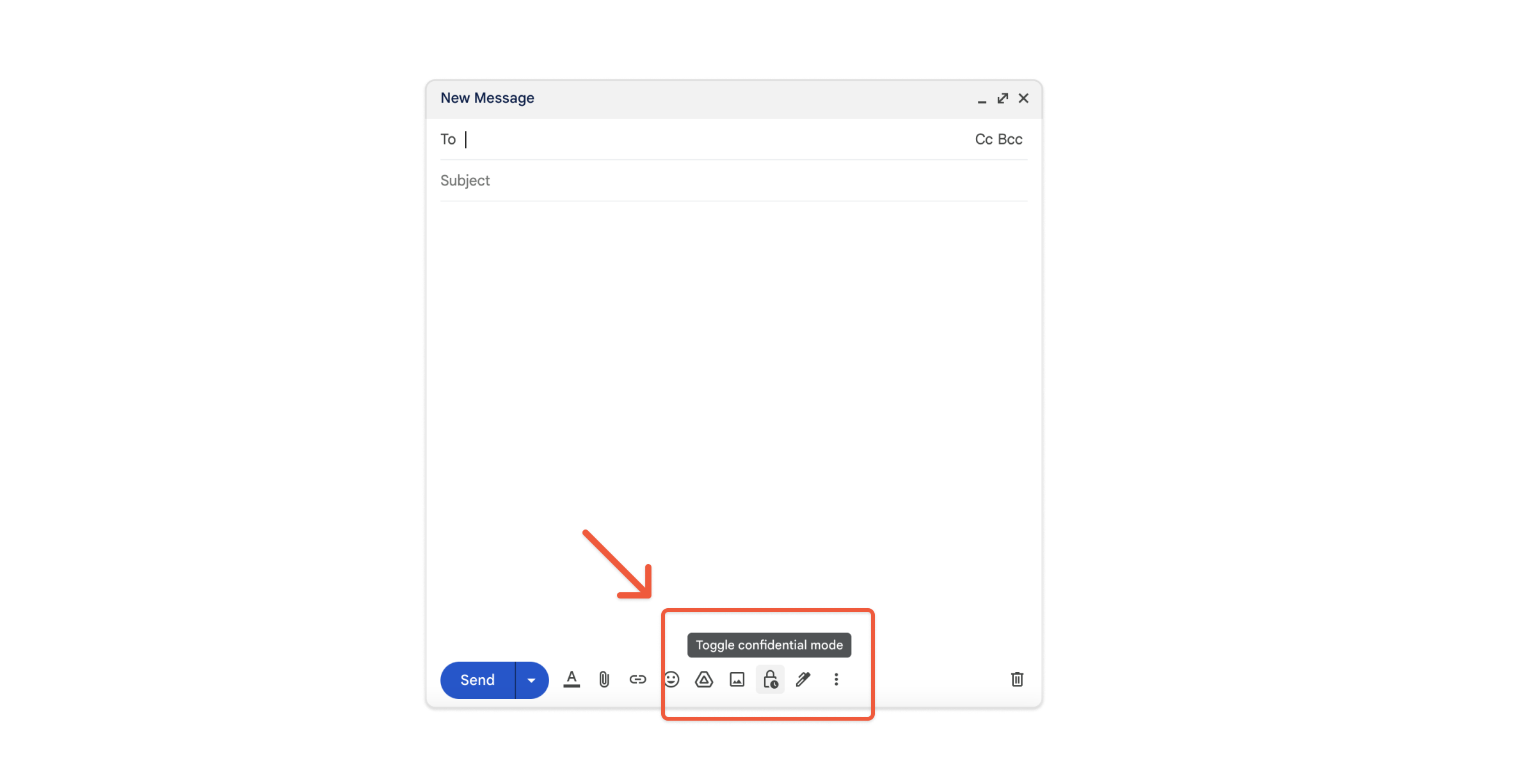- Click on the Confidential Mode button—the tiny lock at the bottom of the window—to start composing an email in this mode