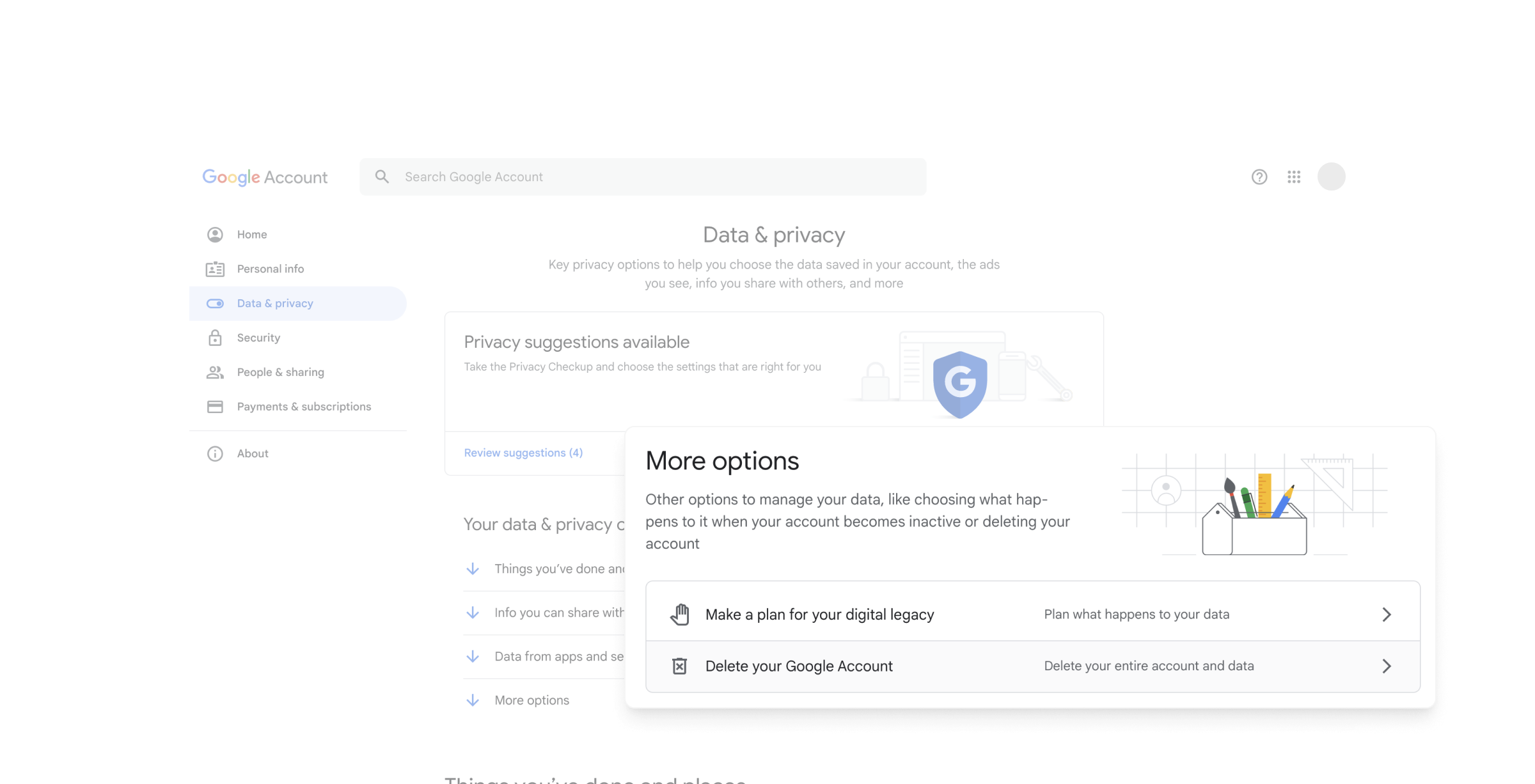 - Choose the Manage your Google Account choice from this menu. This action will direct you to your Google Account settings