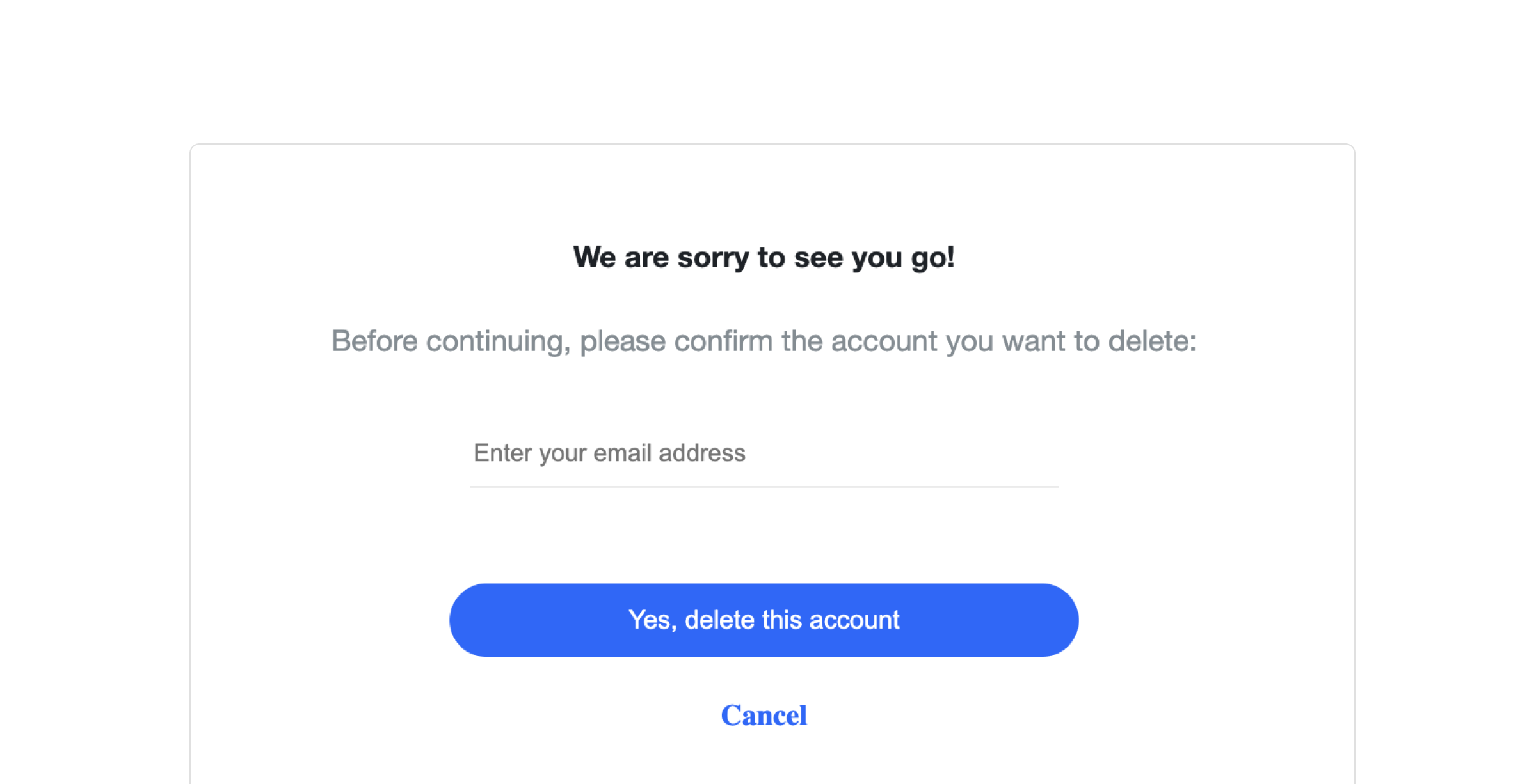- Click on the Terminate this Account button to initiate the deletion process