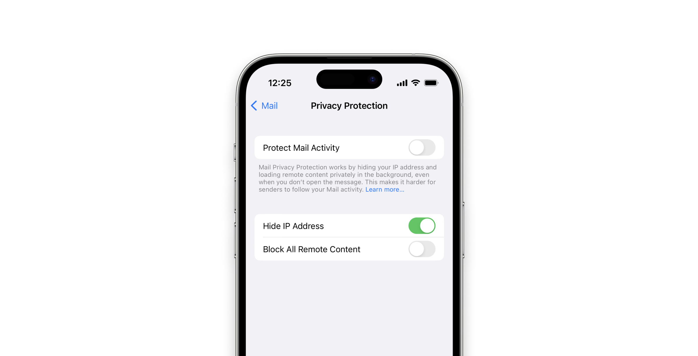 Source: iPhone screenshotIf you disable Mail Privacy Protection, you’ll see an option to turn on its two features separately. You can choose to only hide your IP address or block remote content.