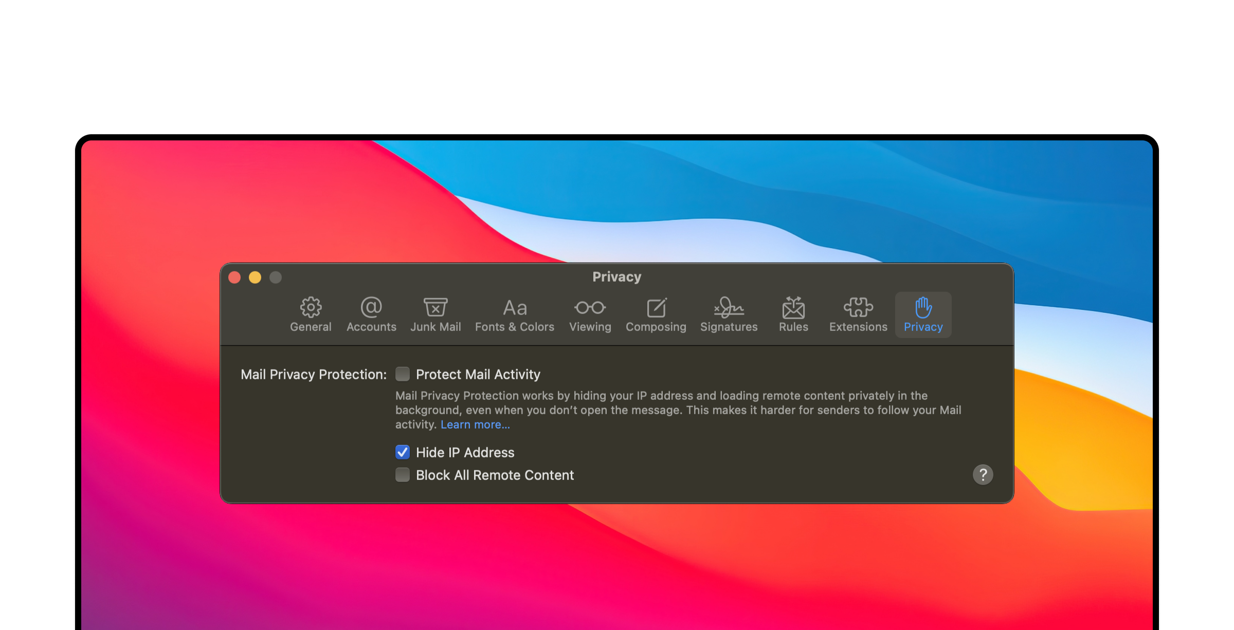 Also known as spy pixels, tracking pixels are embedded in most emails you receive from a newsletter or similar source. They come in the form of imperceptible 1x1px images and are used to track the recipient’s behavior.The pixel is automatically downloaded when you open the email and used to feed information back to the sender. This is mostly done for marketing purposes as it helps companies understand your buying journey better. While there’s typically no malicious intent behind such practices, they’re still a significant invasion of your privacy.Worse yet, hackers can misuse spy pixels to fine-tune phishing attacks—a common form of cybercrime targeting users with spoof emails aimed at stealing their login credentials or other sensitive information. By learning your email habits, the attacker can customize the phishing message and send you an email with a higher chance of success.To prevent the above issues, Mail Privacy Protection downloads the spy pixel on a remote server before the email reaches your inbox. You get a “clean” version that can’t be tracked, so you can have more privacy and avoid exposing yourself to the risk of elaborate cyberattacks.How to protect email on iPhone and Mac