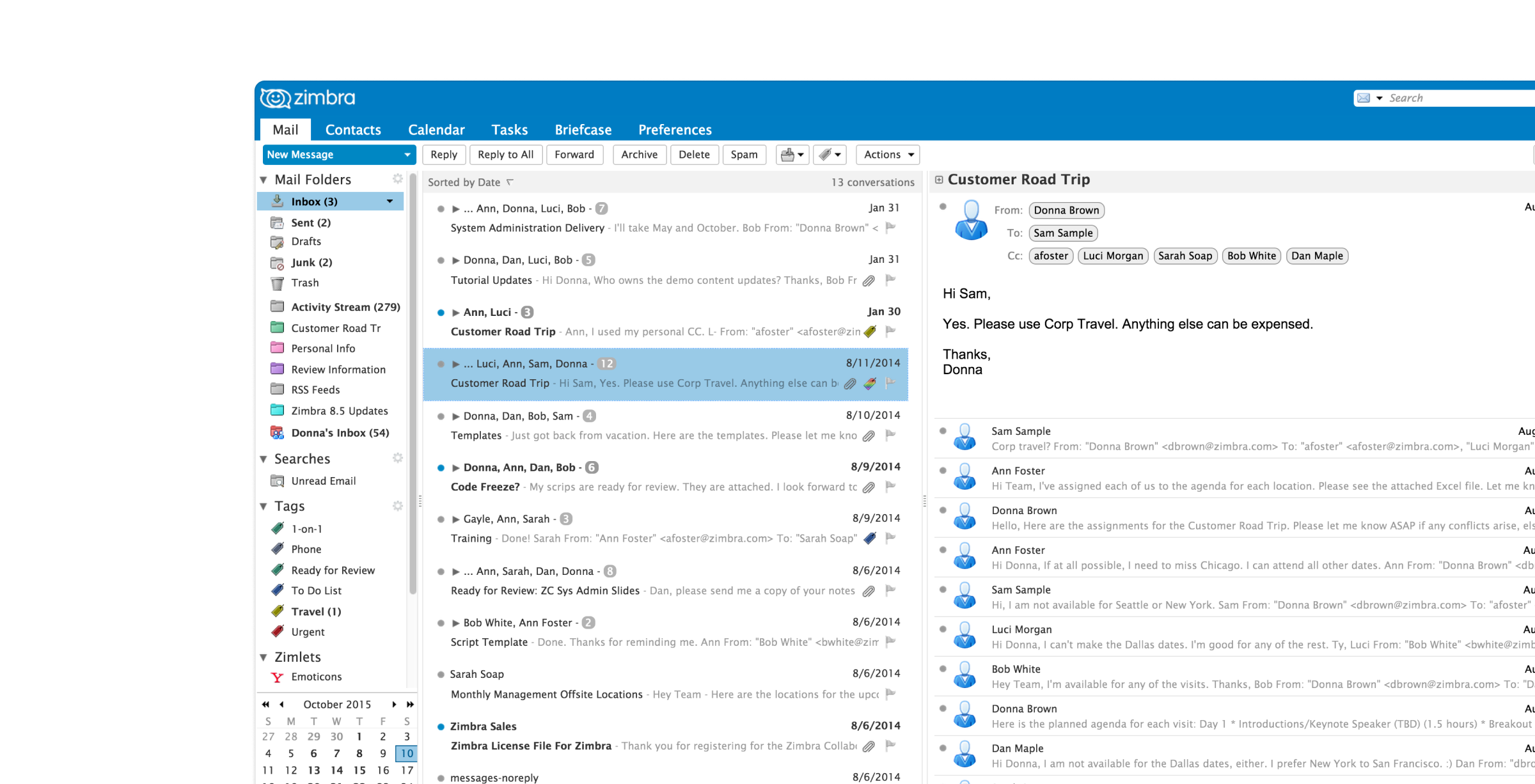 Source: ZimbraZimbra is a collaboration suite primarily aimed at business users, though it’s also suitable for personal use thanks to its simplicity and user-friendliness. It suffers from operating system constraints and similar design issues as many of its competitors, but it can be a decent choice if you look beyond aesthetics.